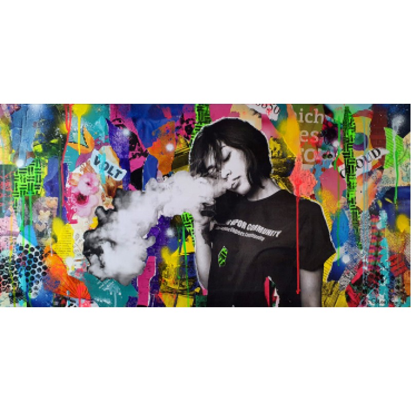 Kunstwerk Collage auf Leinwand 40x80cm "Vapers Community"