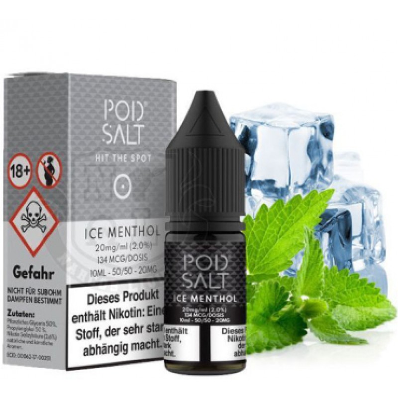 POD SALT Nikotinsalz Liquid "Ice Menthol" 20mg/mlGeschmack• Kühle Menthol MischungMischungsverhältnis50% PG / 50% VGInhaltsstoffePropylenglycol (E1520), pflanzliches Glycerin (VG E422),Nikotinsalicyla..