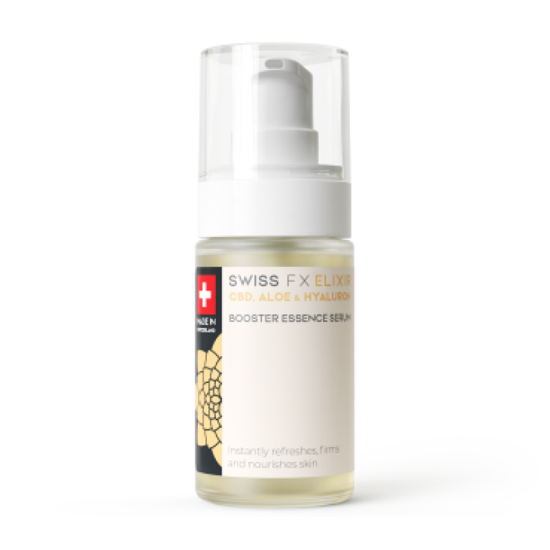 30ml SWISS FX ELIXIR CBD Booster SerumDas SWISS FX Elixir Booster Serum wird in der Schweiz unter den Bio Suisse Richtlinien hergestellt. Die beruhigenden Eigenschaften helfen reaktiver Haut dabei bes..