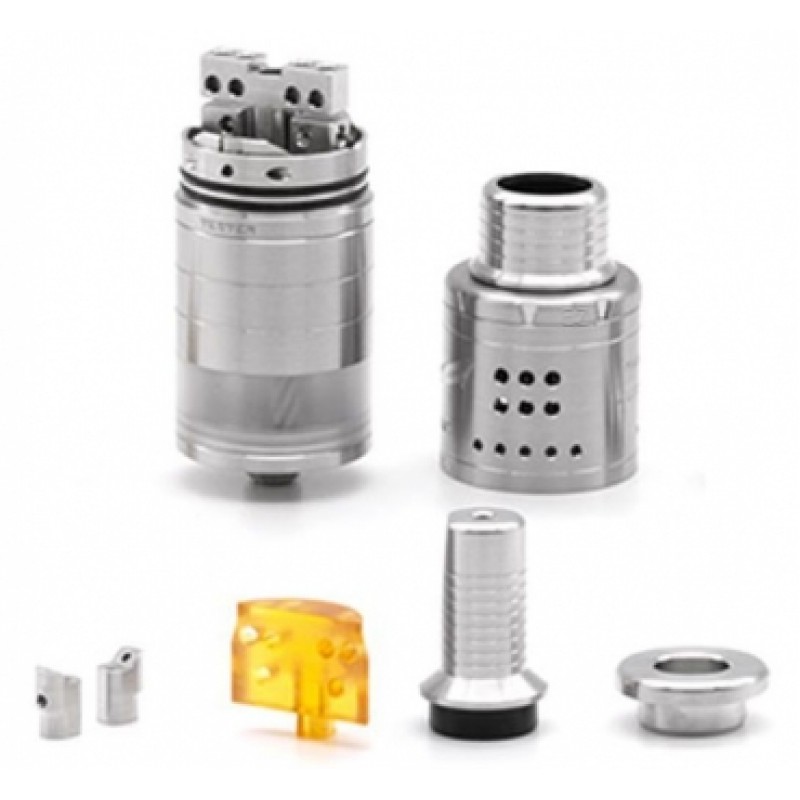 Besonderheiten: | • Single/Dual-Coil-Deck • MTL/DTL-Airflow Control • + Side-Airflow Control • Top-Filling-System • Top-Coiler • Liquidfluss über 4 Edelstahldochte |